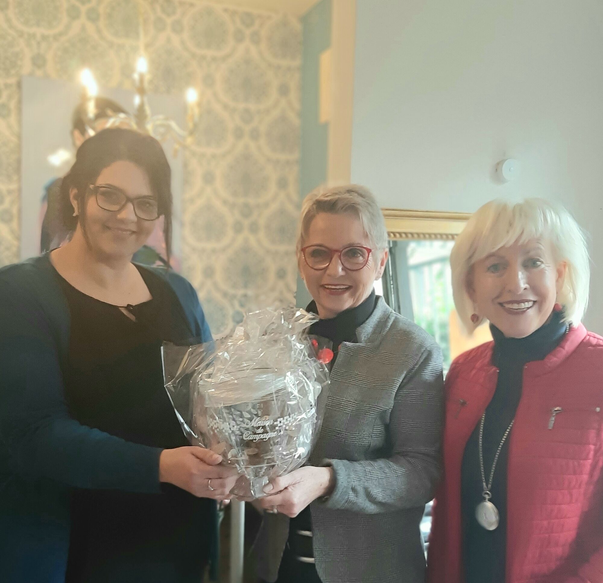 Spendenübergabe: Sarah Gaber mit Angelika Krahl-Brand und Monika Simshäuser (von links). Foto: drh